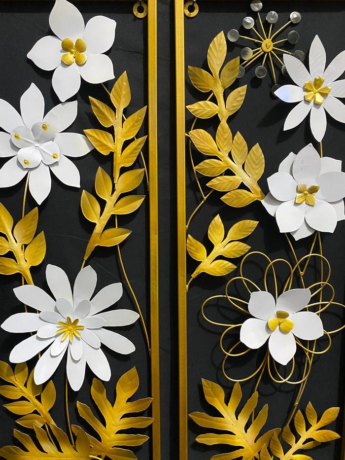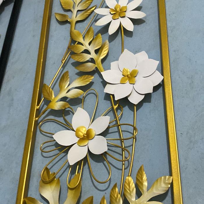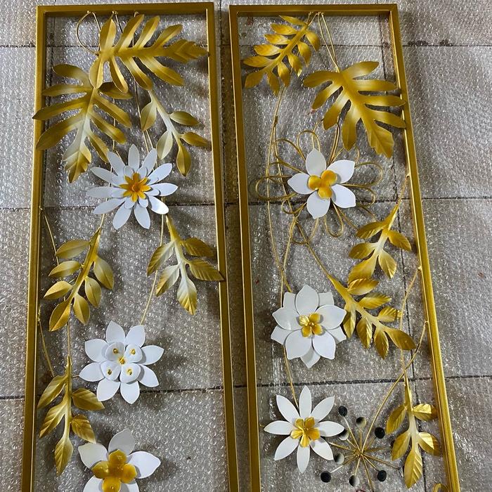 Walldecor Berkah Hiasan Dinding Frame Metal Gold 85x31 Wall Dekor Nordic Bunga Leaf Gingko Modern