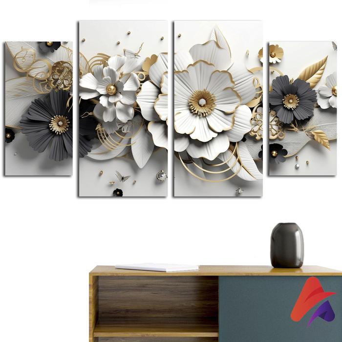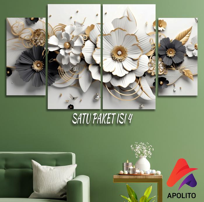 HIASAN DINDING 3D BUNGA AESTHETIC SET ISI 4 UNTUK KAMAR DEKORASI RUMAH WALL DECOR ESTETIK POSTER JUMBO