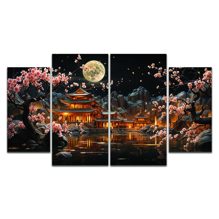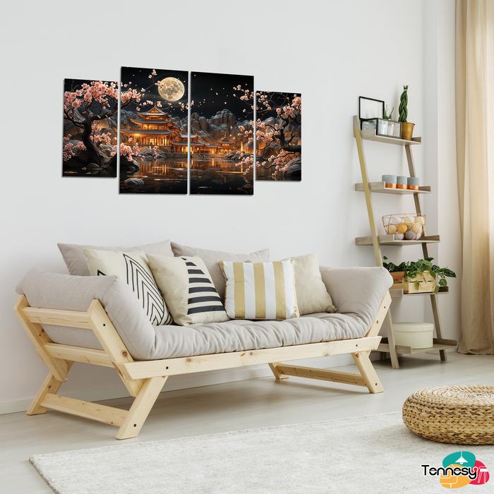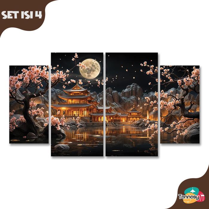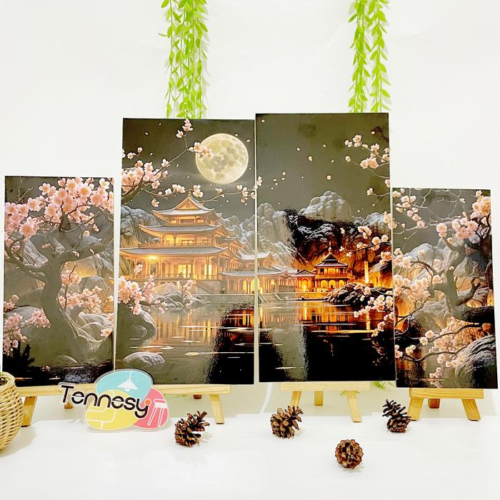 Hiasan Dinding Pemandangan 1 Set retro japanese town 4 Panel Wall Decor Pajangan Kamar Lukisan Poster Kayu estetik