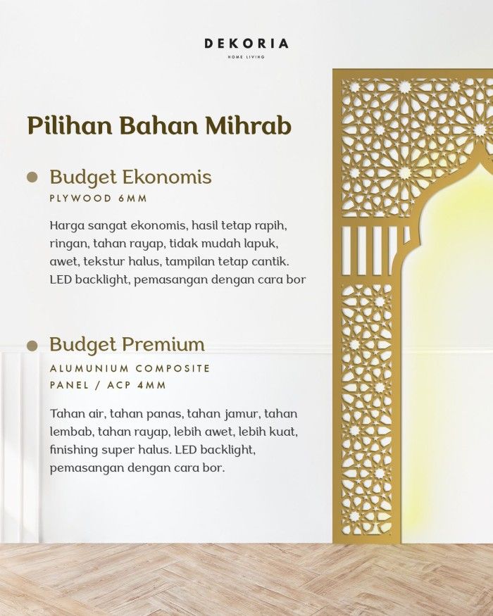 Mihrab Mushola Rumah Aesthetic Islamic | PREMIUM Alumunium Composite Panel (ACP)