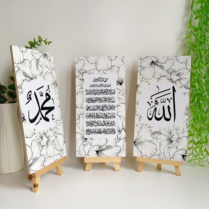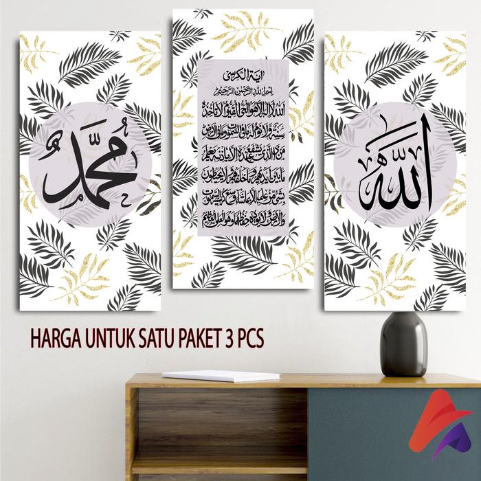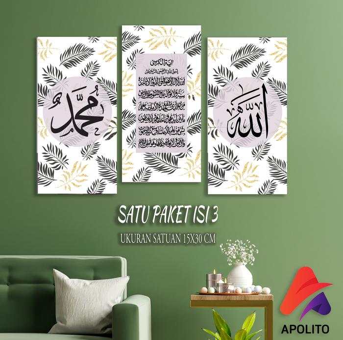 HIASAN DINDING SET ISI 3 KAYU KALLIGRAFI ISLAMI AESTETIK PAJANGAN DINDING DAUN WALL DECOR (1 SET ISI 3) Paku
