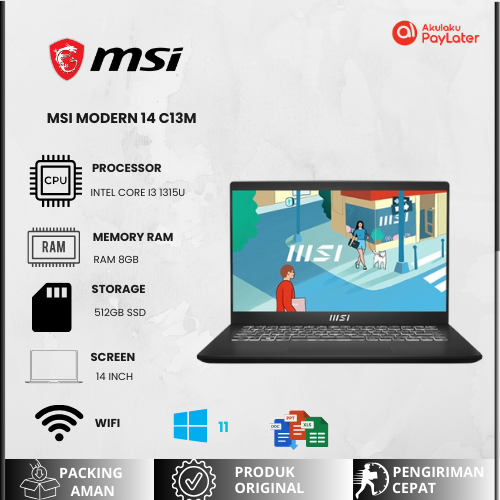 [Mall] LAPTOP GAMING LAPTOP MSI MODERN 14 C13M INTEL CORE I3 1315U - RAM 8GB 512GB WINDOWS 11 14.0FHD BLIT IPS