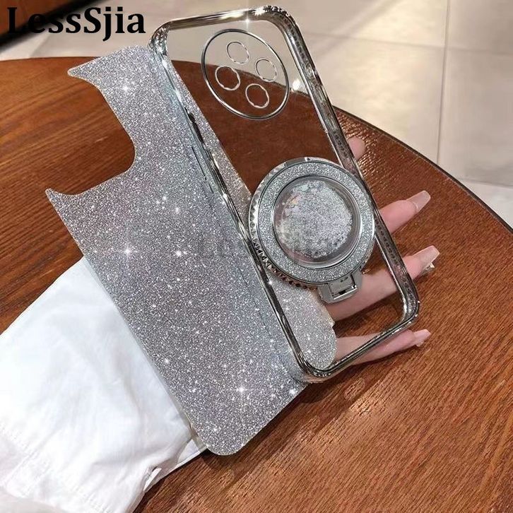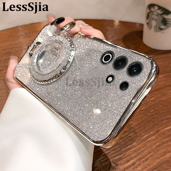 Soft Cas Casing itel Phone Cover Itel S25 Ultra Back Case with liquiid Glitter Quicksand Hourglass Stand Holder Luxury