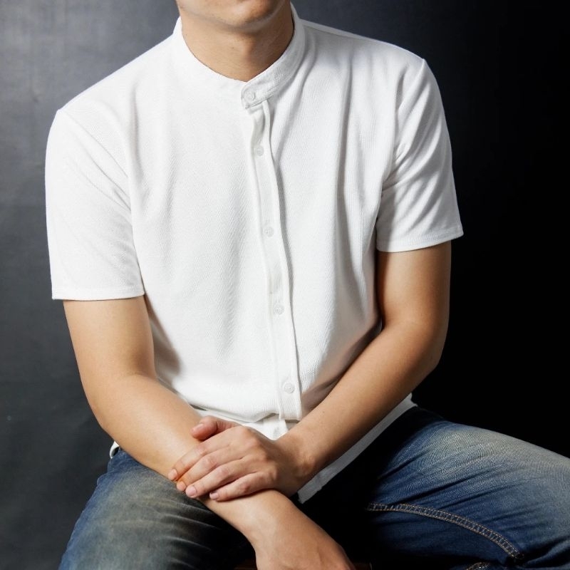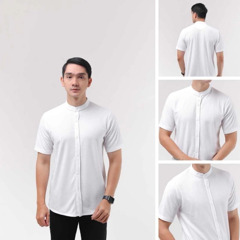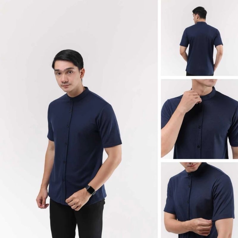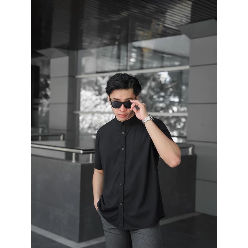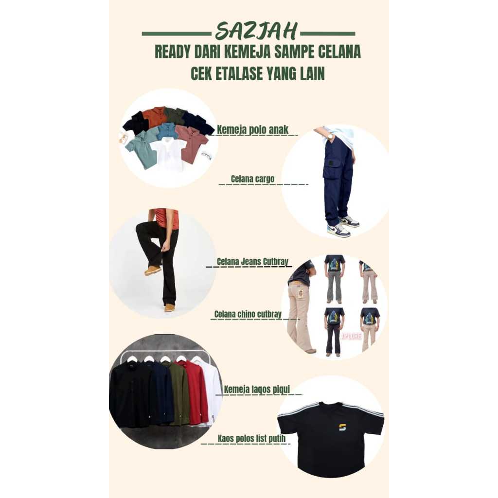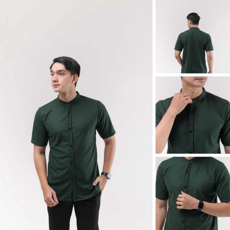 SAJZAH KEMEJA SANGHAI LENGAN PENDEK POLOS PRIA SLIMFIT CASUAL LAQOS PIQUE HEM PENDEK KERAH KOKO