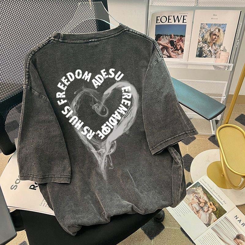 Huruf berasap berbentuk hati cinta retro Kaos Pria Terbaru |Kaos Cotton Combed 30s|Kaos Cowok Distro Original100%