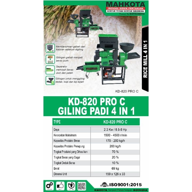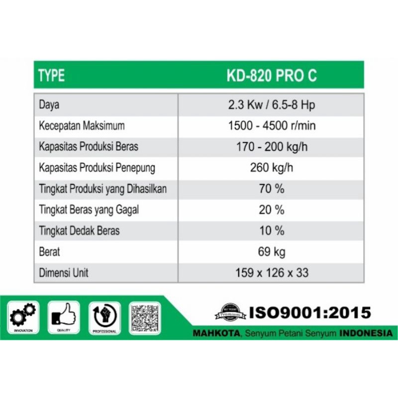 Mesin Giling Padi Jadi Beras Penepung Mahkota KD820Pro KD820 Selep KD 820 Pro Engine 7HP
