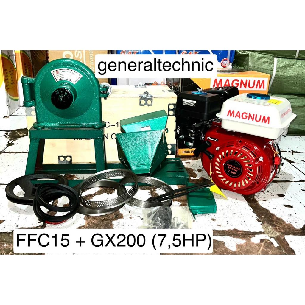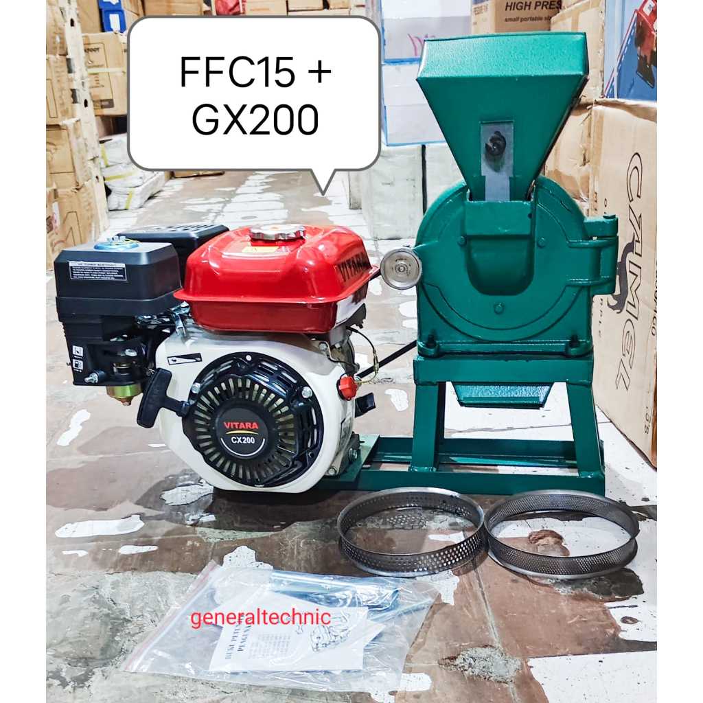 Mesin Giling Tepung FFC15 Disc Mill (Peti Kayu) Engine Penggerak Bensin GX200 (7,5HP) Asahimoto Disc Mill FFC15 Lengkap