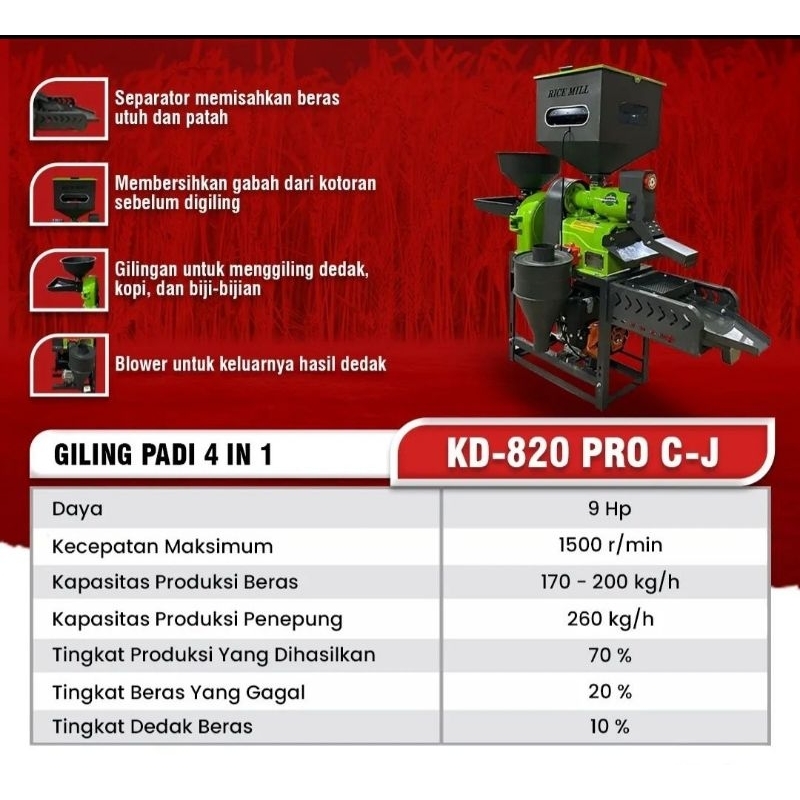 Mesin Giling Padi dan Penepung Multifungsi KD-820 PRO C 4 IN 1 Mahkota Original Berkualitas