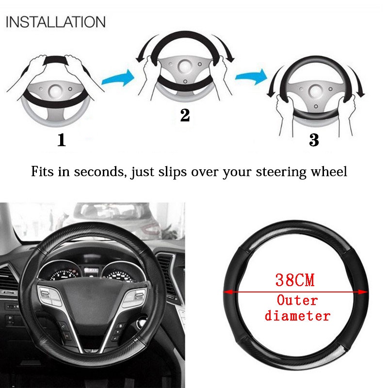 Penutup Roda Kemudi Mobil Serat Karbon/Carbon Fiber Car Steering Wheel Cover/Cover Sarung Stir Setir Mobil