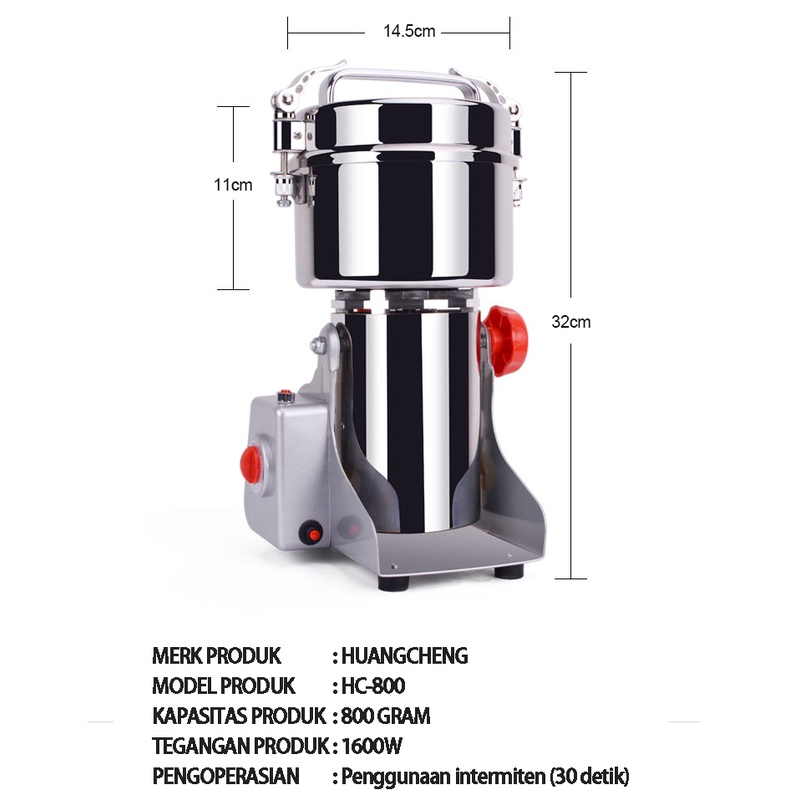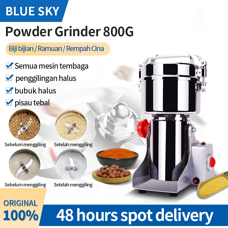 BLUE SKY 800G Mesin bubuk/tepung Penggiling Gerinda Herbal Biji Kacang Obat Mesin Giling Grinder Elektrik