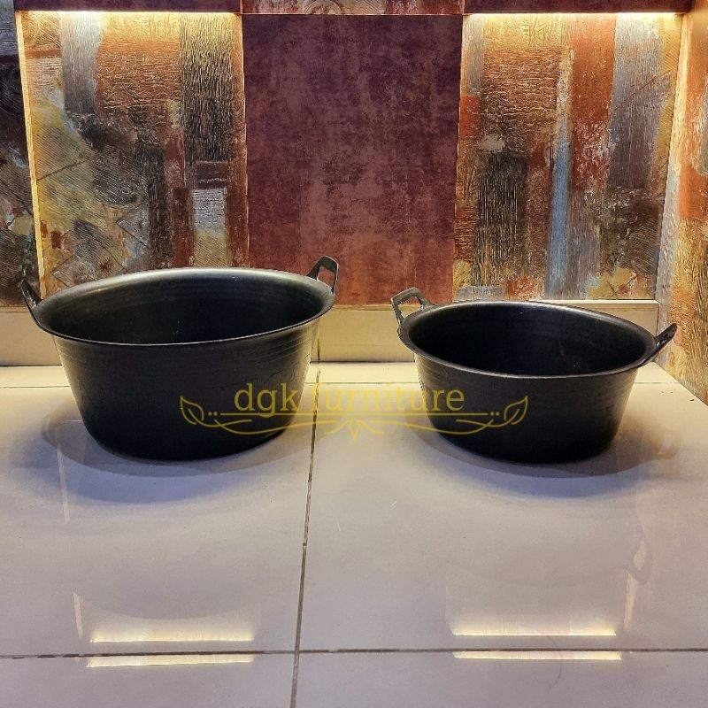 Baskom Ember Bak Gagang Bergagang Kuping Cor Hitam KARET ANTI PECAH Cuci Nyuci Piring Baju Pakaian Rendam Cucian Diameter 42 cm 34 cm