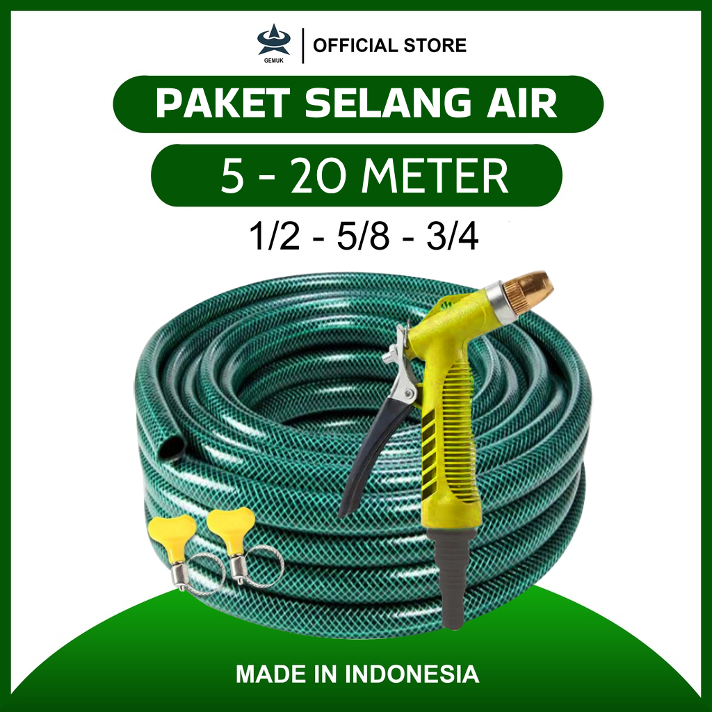GEMUK Selang Air Cuci Motor 20 Meter 1/2 5/8 3/4 Inch Sepaket Semprotan Air Watergun Jet Spray Dengan Selang Benang Anti