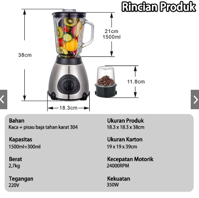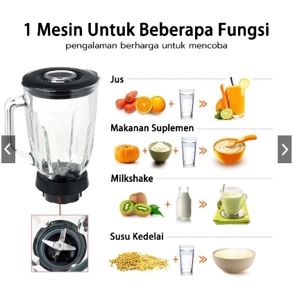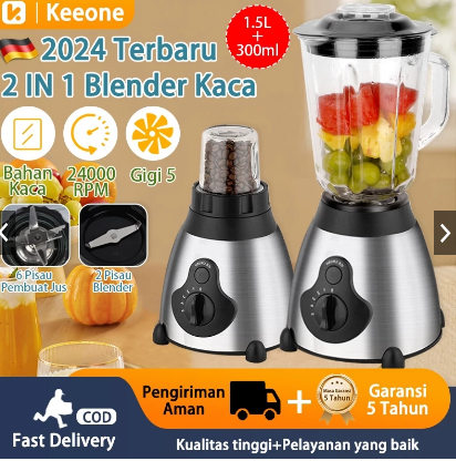 Keeone 1.5L Blender Buah Kaca 6 Pisau Juicer 300ml Blender Jus 2 in 1 Mesin Blender Smoothies 5 Gigi Cabe Blender Choppe