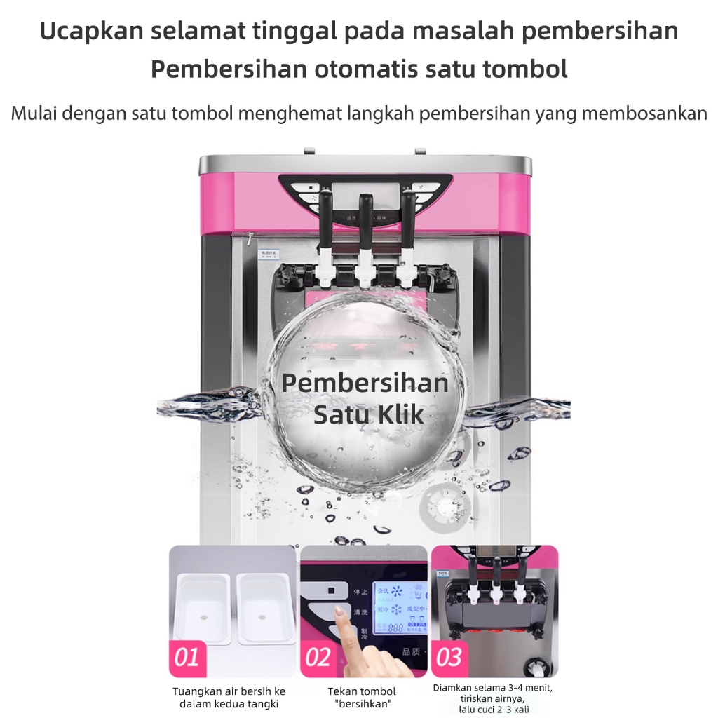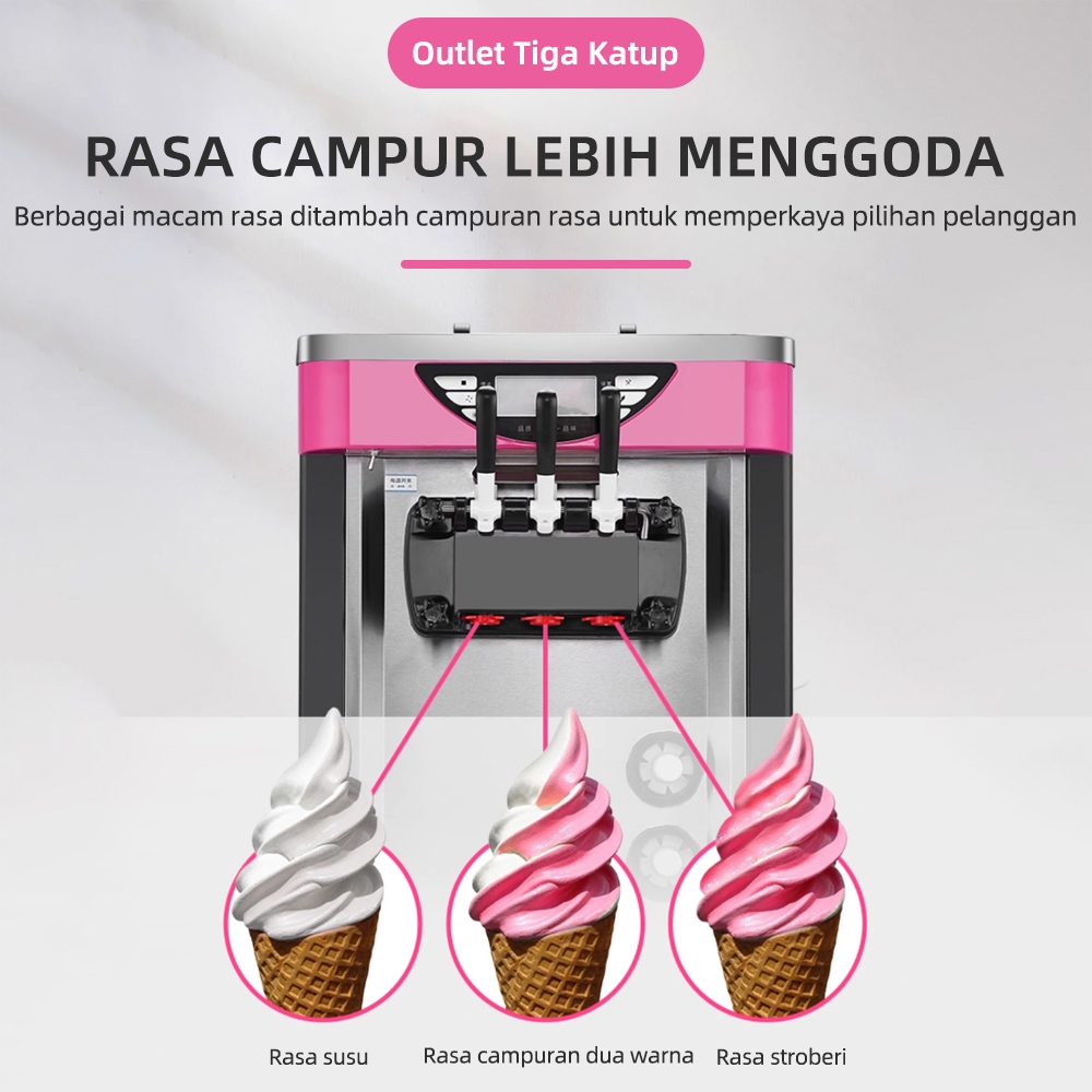 LENODI 2400W Merah Mesin Es Krim Soft Ice Cream Maker 3 Tuas Classic Series/Baja tahan karat/Mesin Es Krim Vertikal/Pen