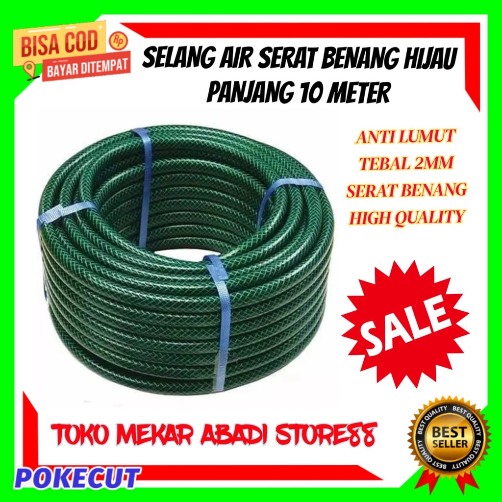 PROMO SELANG AIR 10 METER SERAT BENANG HIJAU UNTUK CUCI MOTOR MOBIL & SIRAM TANAMAN