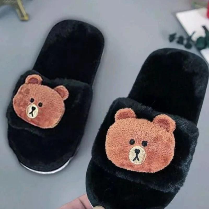 Sandal Rumah Wanita Kokop Bulu Boneka Bear Sandal Viral