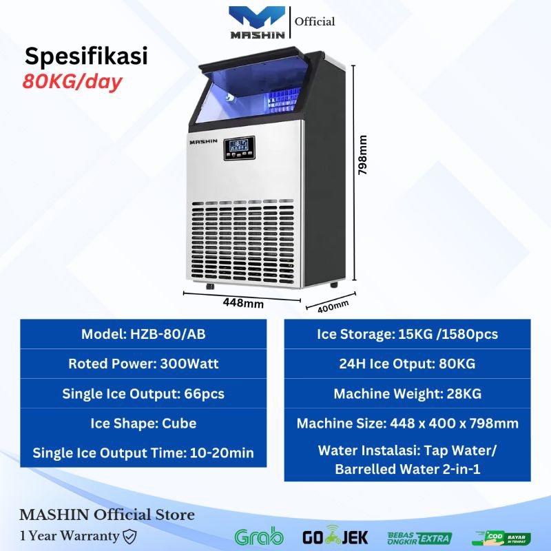 Mashin - Mesin Pembuat Es Batu Kristal 200Kg/Hari Ice Cube Maker Machine 80-200kg Kapasitas Komersial