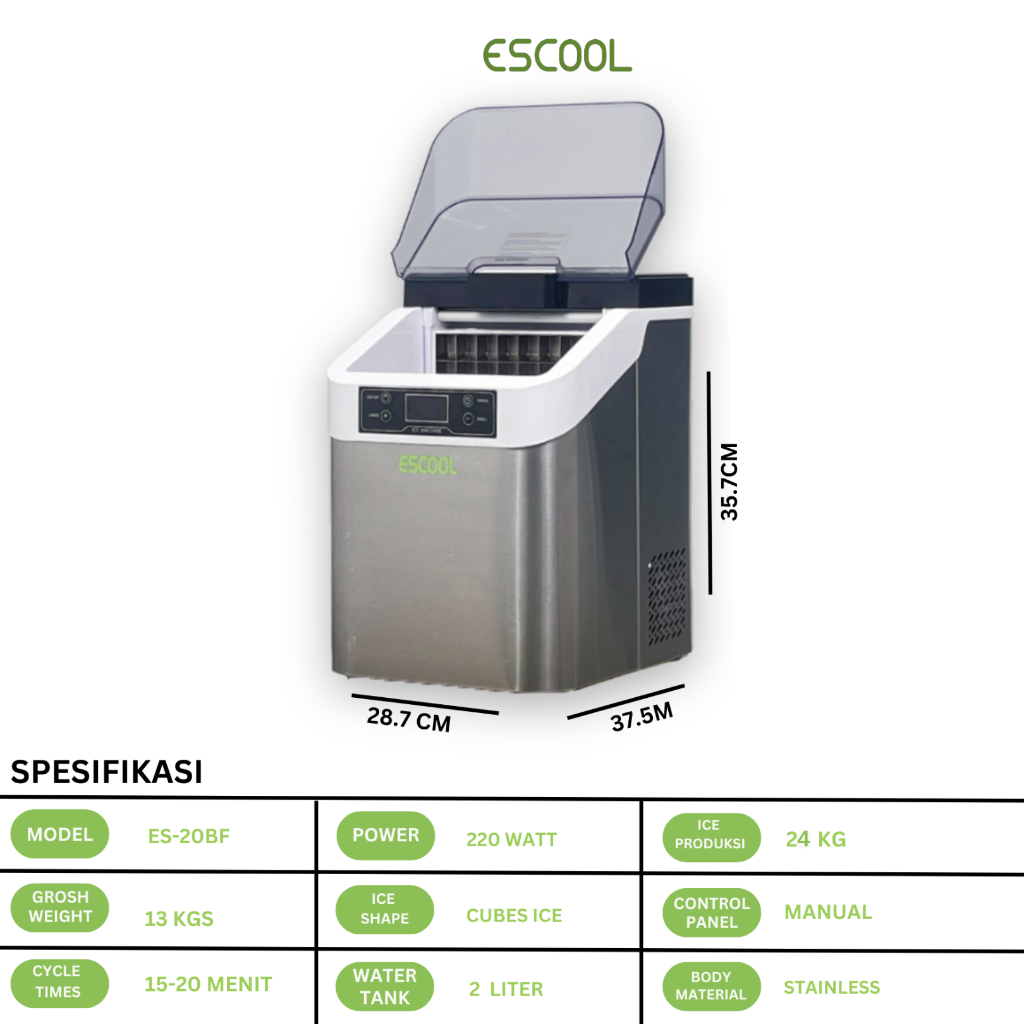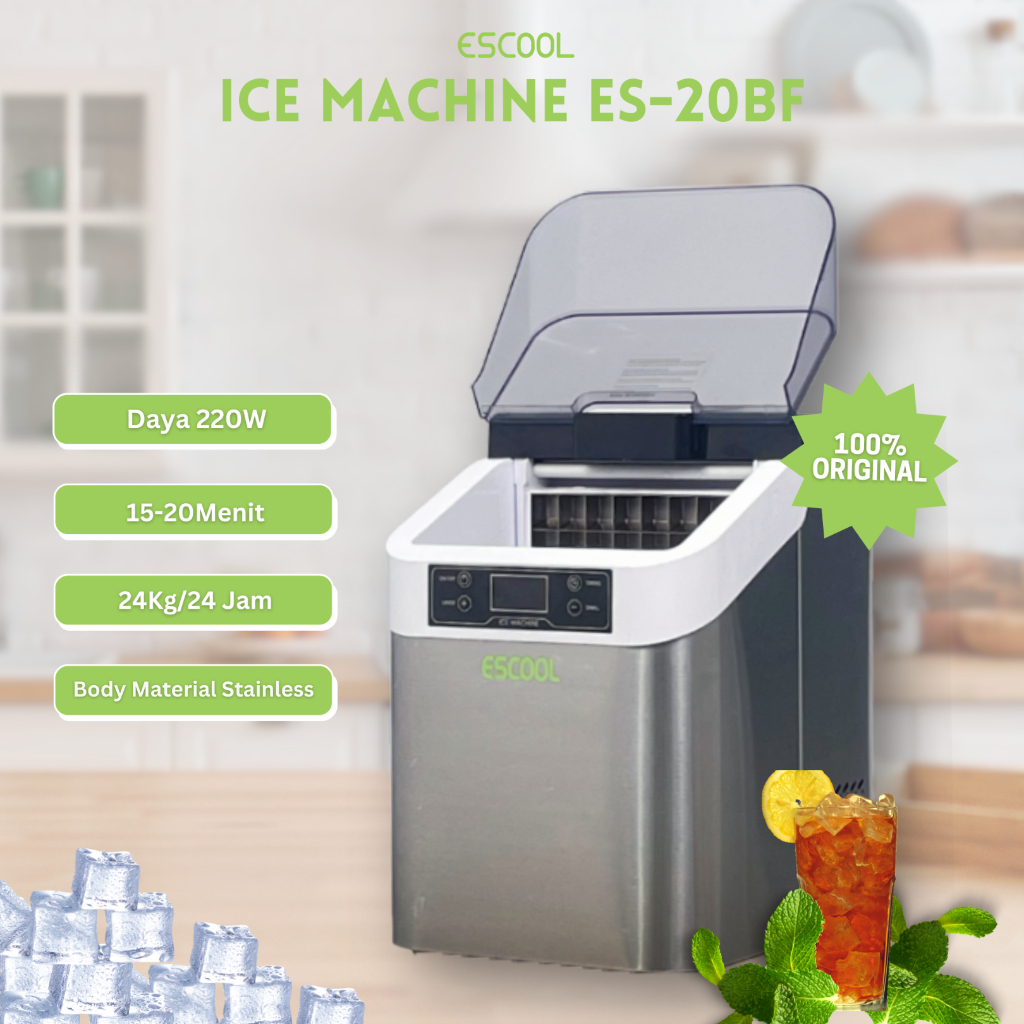 Escool Mesin Es Batu Ice Cubes Maker 24Kg per 24 Jam, ES-20F