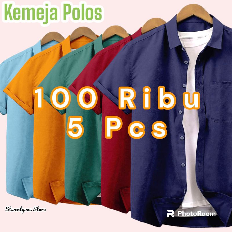 STWENTYONE STORE (BUNDLING 5 PCS 100 RIBU) KEMEJA POLOS PENDEK PRIA