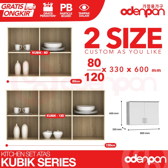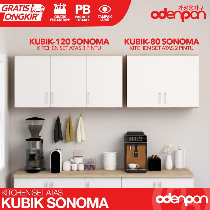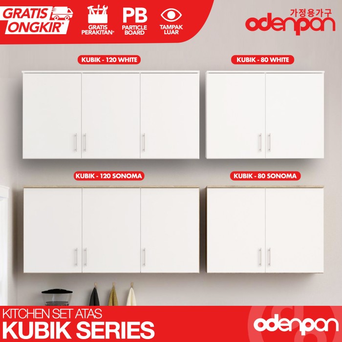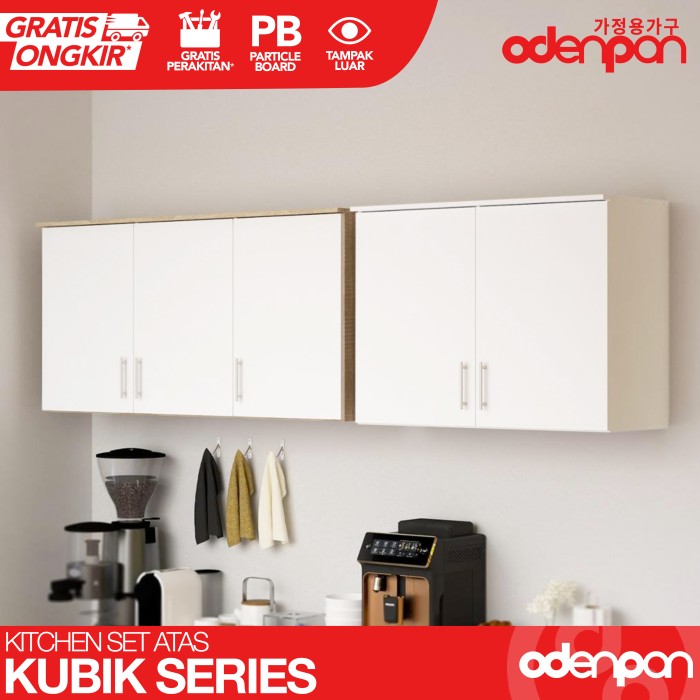 ODENPAN KITCHEN SET ATAS / RAK GANTUNG DAPUR SERBAGUNA MINIMALIS KUBIK - 2 PINTU WHITE, PASANG TEMBOK