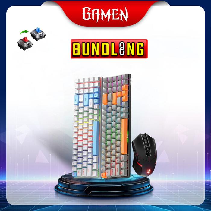 [BUNDLING] GAMEN TITAN ELITE KEYBOARD GAMING MECHANICAL + GM300W MOUSE GAMING WIRELESS - GARANSI 1 TAHUN - TITAN ELITE WHITE BLUE SWITCH+GM300W