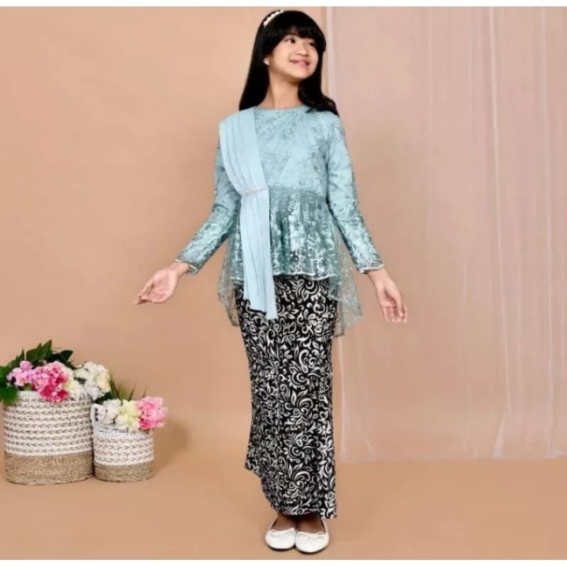 kebaya anak perempuan (Promo) Oneset Kebaya Slendang Anak Prempuan Usia 5 Sampai 13 Tahun Kebaya Wisuda Anak SD