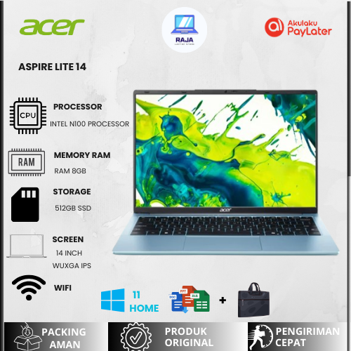 [Mall] LAPTOP ACER TERBARU ASPIRE LITE AL14-31P-C0G4/C6DD 14" WUXGA INTEL N100 RAM 8GB/512GB SSD INTEL UHD GRAPHICS W11