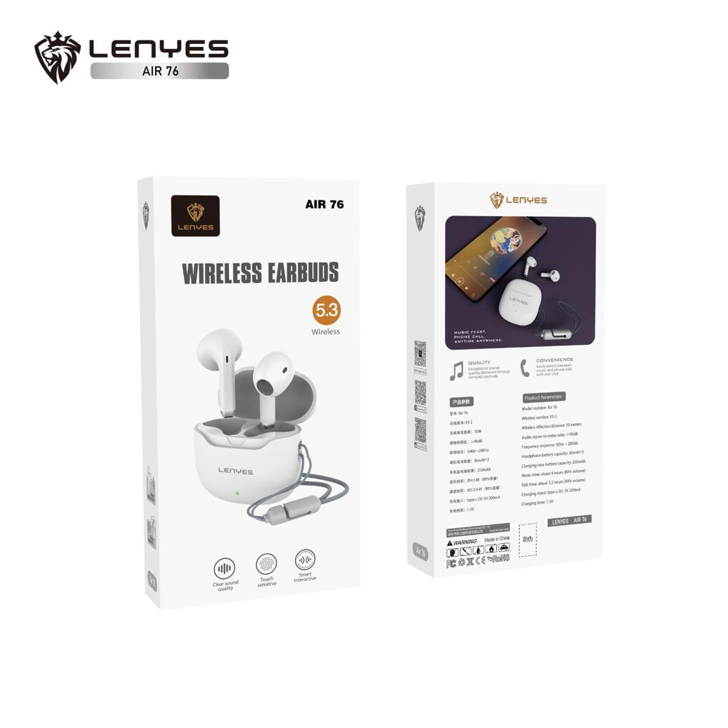 LENYES AIR 76 WIRELESS EARBUDS TWS BLUETOOTH 5.3 HIFI STEREO SMART TOUCH EARPHONE