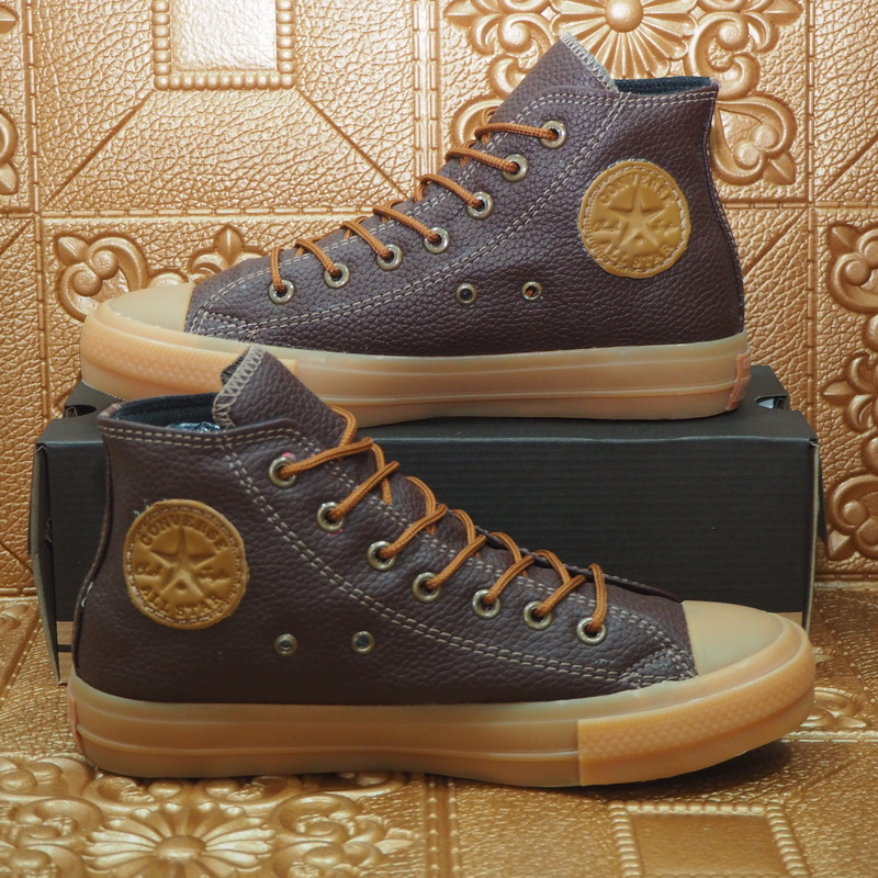 SEPATU CONVERSE ALLSTAR KULIT SINTETIS ALL STAR MOTIF KULIT JERUK HITAM HIGH
