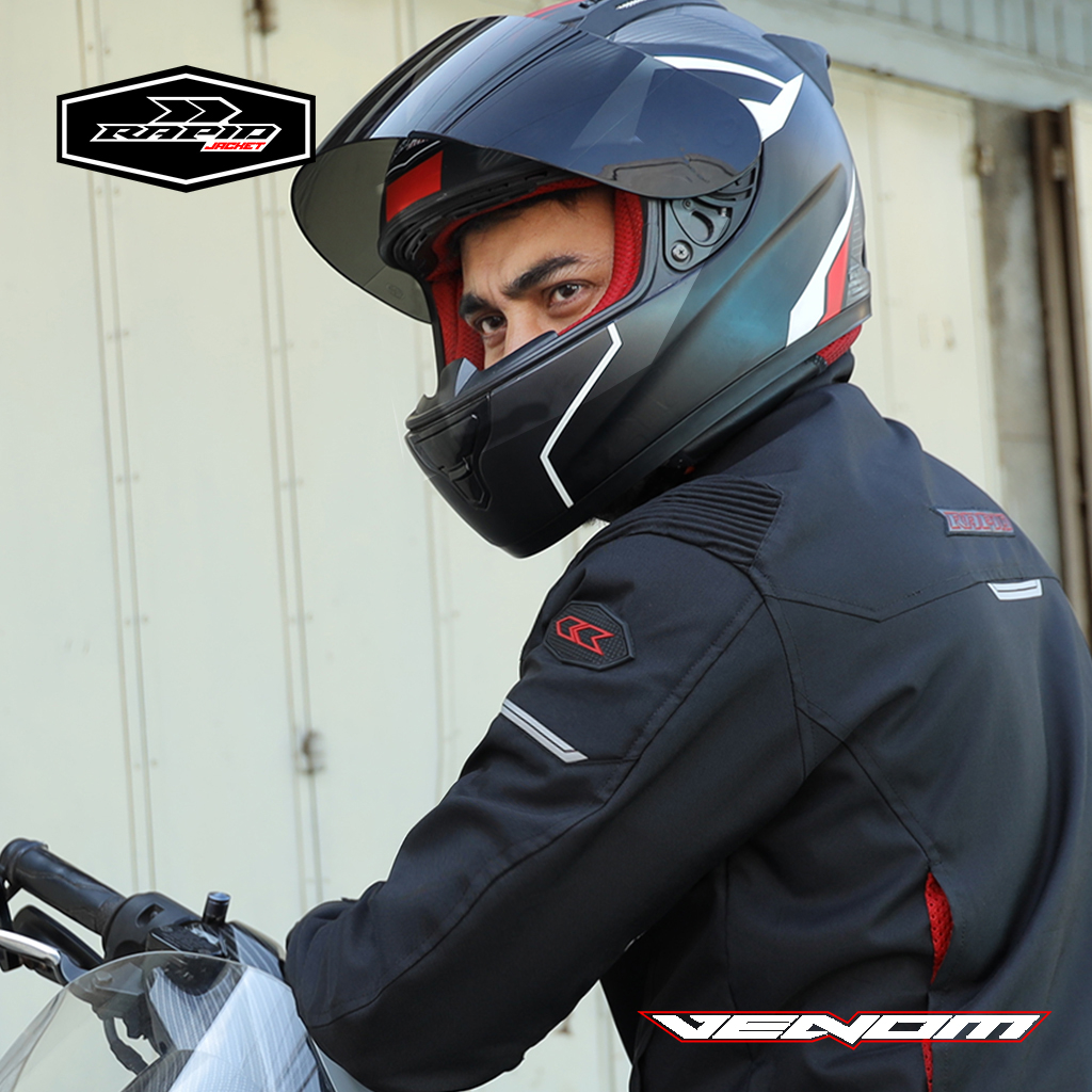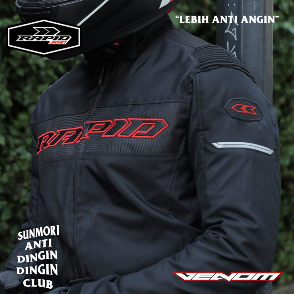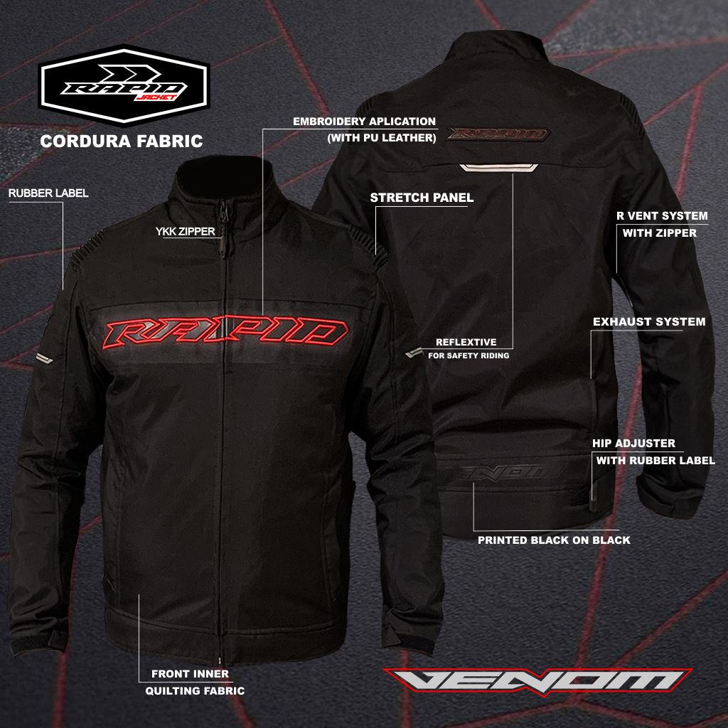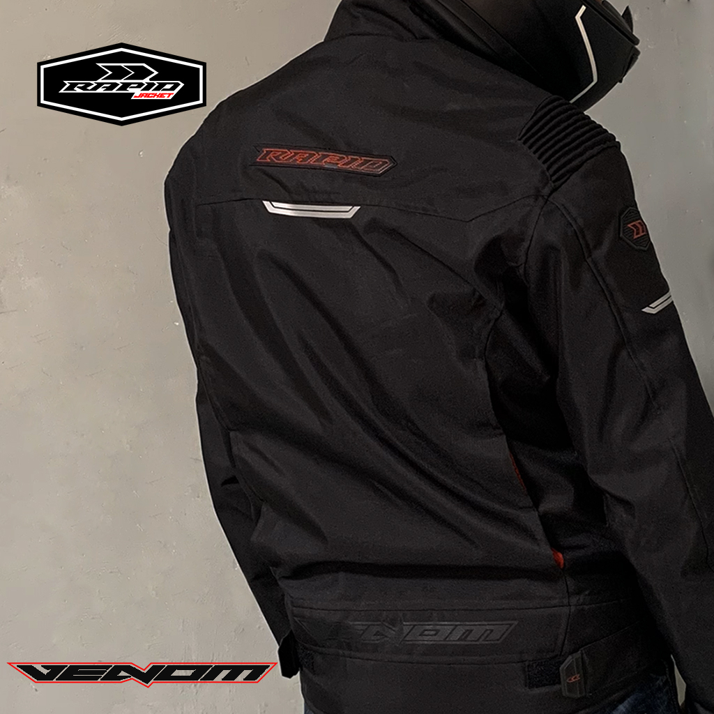 Jaket motor touring windproof & wateproof RAPID VENOM dengan material bahan cordura design full bordir dan reflektif