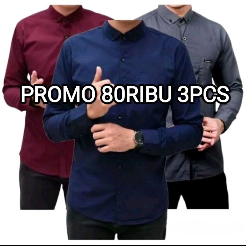 PAKET 3 PCS KEMEJA PRIA POLOS LENGAN PANJANG SLIMFIT CASUAL FORMAL BAJU DINAS
