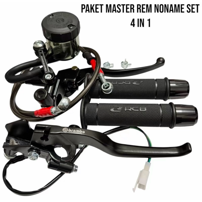 Paket Set 4in1 Master Rem Noname Set 1 Tabung big smoke+Handgrip RCB HG55+jalu stang CNC+Selang Rem 95 Cm / Vario Beat M