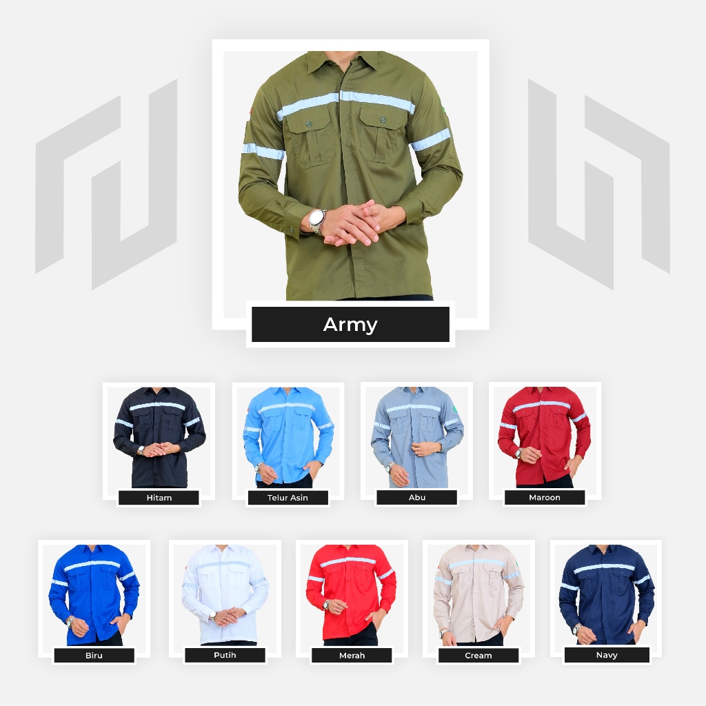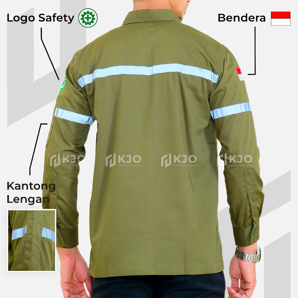 BAJU WEARPACK KEMEJA SAFETY K3 PROYEK TAMBANG LENGAN PANJANG - PAKAIAN SERAGAM WERPAK KERJA ATASAN SCOTLITE LAPANGAN WARNA HIJAU ARMY PRIA WANITA