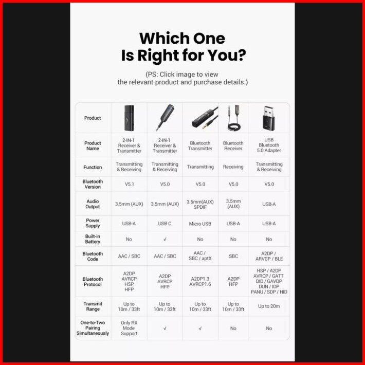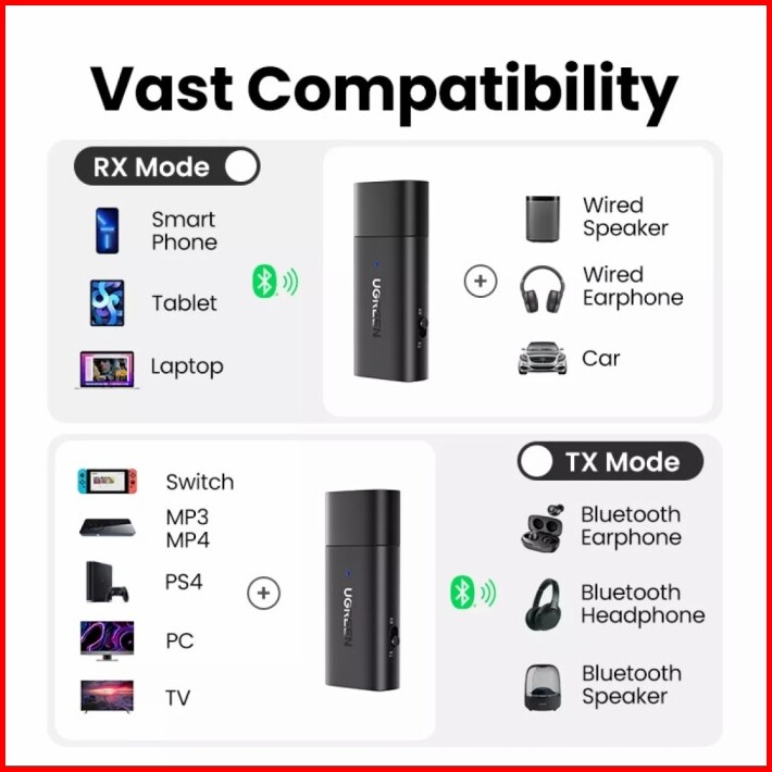 Ugreen Bluetooth 5.1 2in1 Receiver Transmitter Audio Usb Wireless Crs