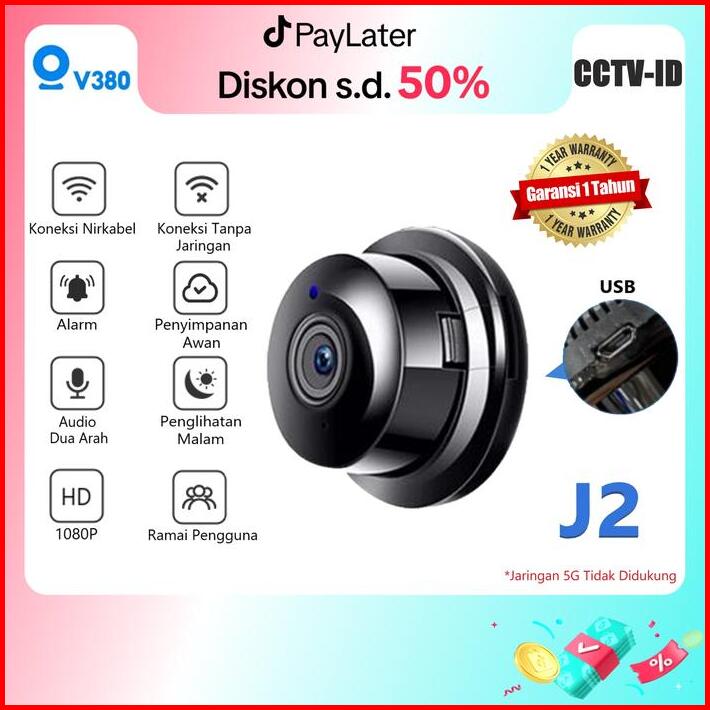 V380 J2 Plug In Cctv Kecil Kamera Pengawas Murah Pemantau Malam Smart Ip Cam Indoor Wifi 1080p Audio Dua Arah No Battery