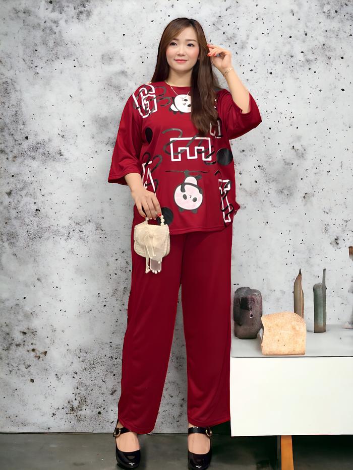 Setelan Wanita Celana Panjang Dan Atasan Kaos Oversize Wanita LD120 SR2376 Baju Dewasa