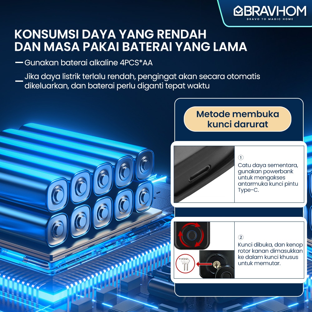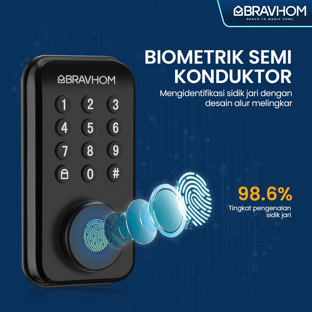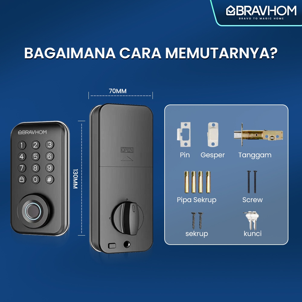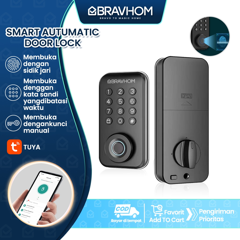 BRAVHOM Kunci pintu kunci pintar Digital lock TUYA Kontrol kunci pintu Sidik Jari Smart doorlock kunci pintu fingerprint
