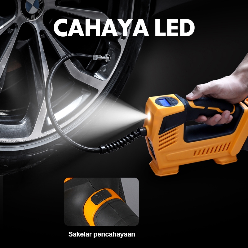 IRONHOOF Baterai Lithium Pompa Ban Mobil Truk Motor Elektrik Cek Tekanan Angin Digital LCD Display Portable Inflator Air