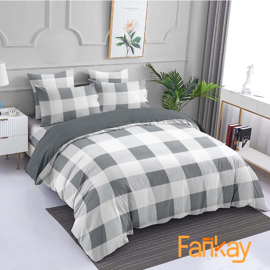BAD COVER CALIFORNIA - BED COVER SET GINGHAM GREY MIX DARK GREY/EMILY UKURAN LENGKAP 90X200 - 200X200