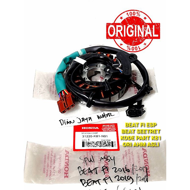 SPUL SEPUL SPULL STATOR COMP HONDA NEW BEAT FI ESP STREET 31220-K81-N01 ORIGINAL AHM 2016/2017/2018