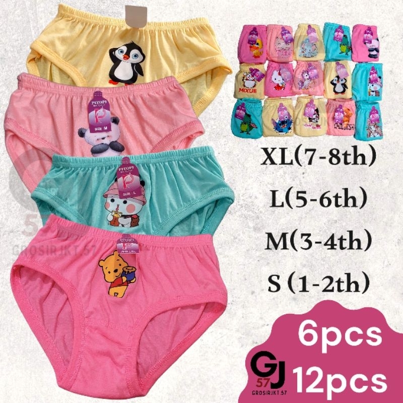 3 Pcs, 6 Pcs, 12 Pcs Celana Dalam Anak Perempuan Usia 1 - 8 Tahun Motif Cd Anak Cewek Karakter Katun