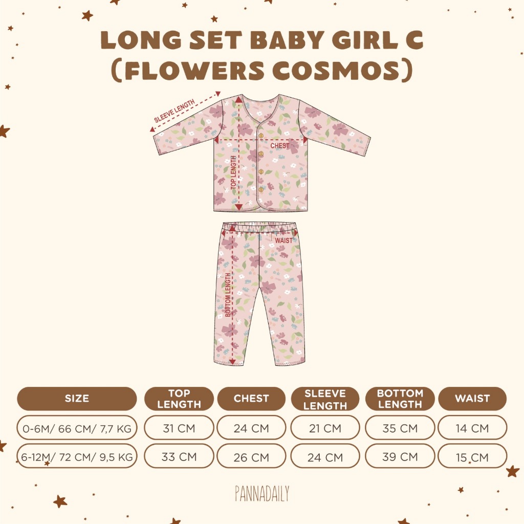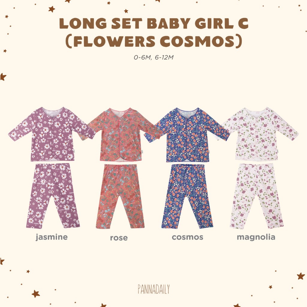Bohopanna - Pannadaily - Long Set Baby Girl Print - Flowers Cosmos Series - Setelan Baju Tidur Panjang - Baju Tidur Bayi