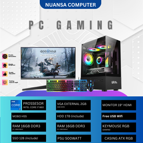Pc Gaming Intel Core I7 Ram 16 Gb Monitor 19/22 Fullset Siap Pakai
