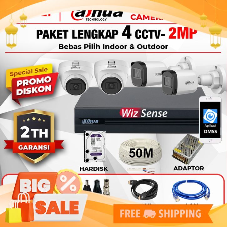 [Mall] Paket CCTV DAHUA 4 Channel Camera DAHUA 2MP +Kabel 50M Garansi Resmi 2TH NEW MODEL 2025
