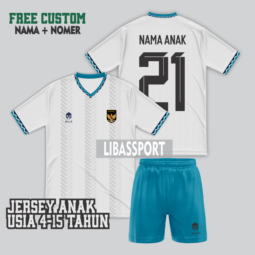 Gratis Nama & Nomer Punggung, Stelan Jersey Timnas Pria Dan Wanita Ukuran Anak - Anak.