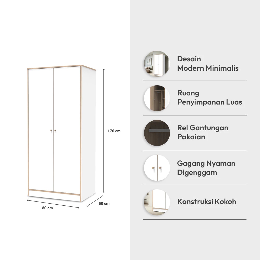 Informa Riyo Lemari Pakaian 2 Pintu - Putih Wardrobe Storage Kabinet Tempat Simpan Baju Lemari Pintu Ayun Tarik Aestheti