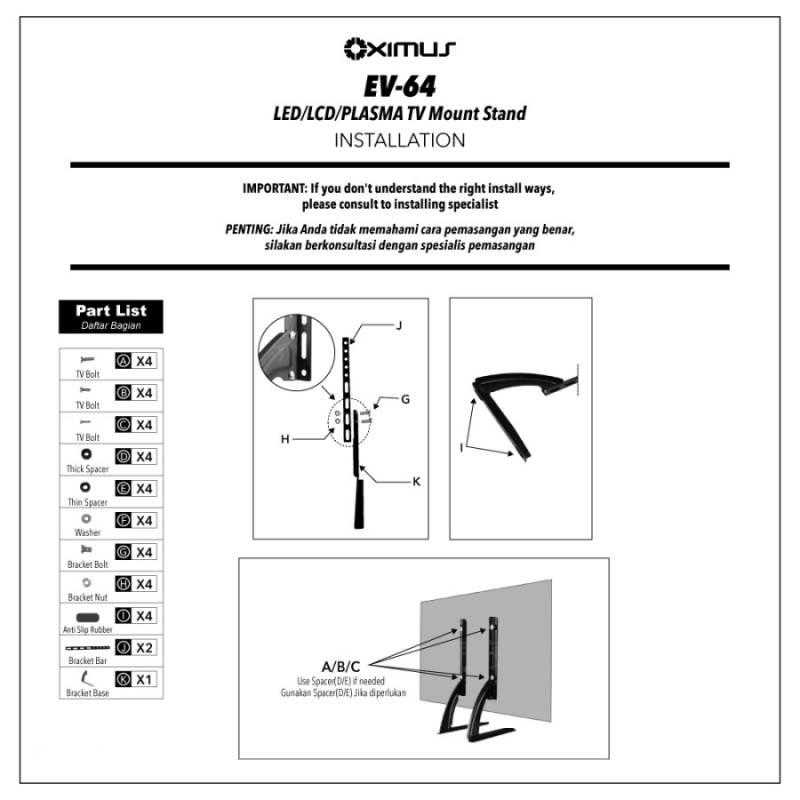 Bracket Meja / Duduk TV Stand Kaki Monitor/TV/LCD/LED/Plasma 26"-43" Oximus EV64 100 PERSEN Original