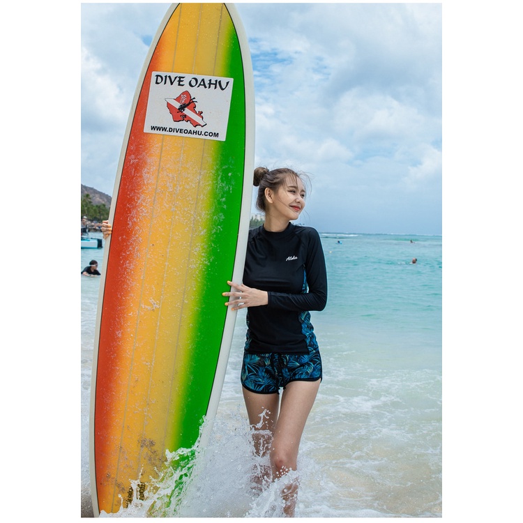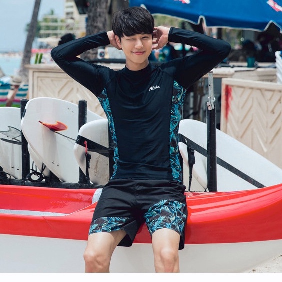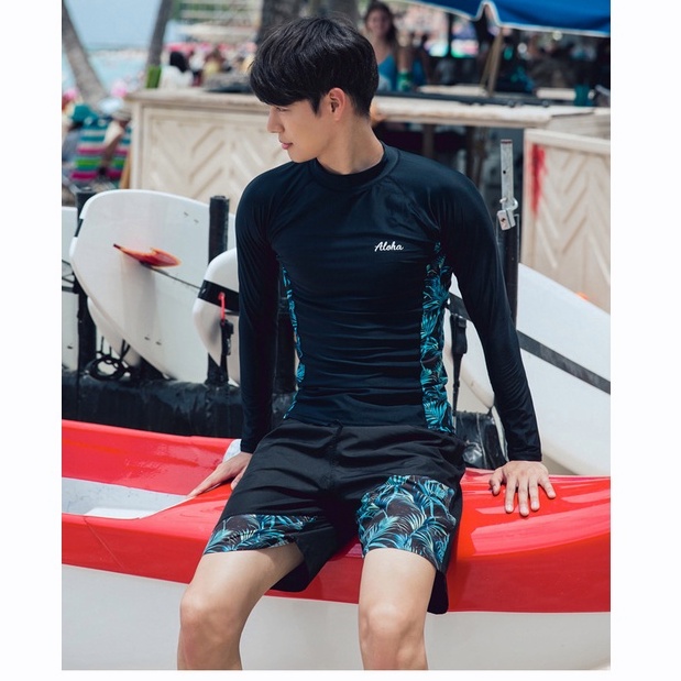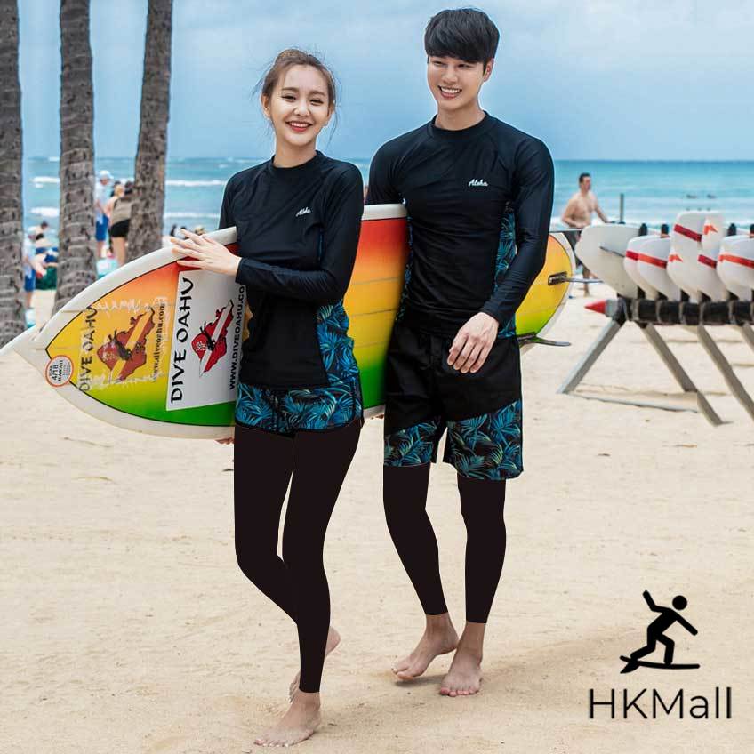 Ready Stock Pria Wanita Rashguards Lengan Panjang Atasan Celana Panjang Celana Pendek O-Leher Baju Renang Pakaian Surfin