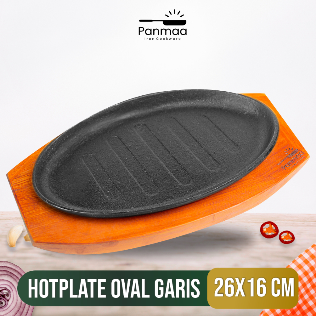 PANMAA Cast Iron Hot Plate Steak Piring Steak Oval Garis 26x16 Cm