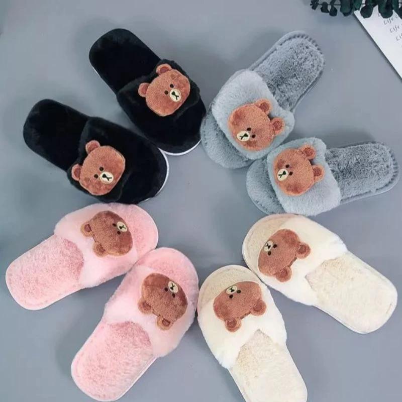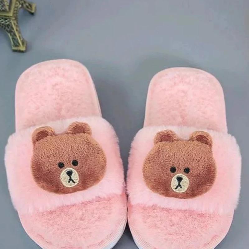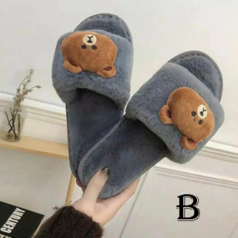 Sandal Rumah Wanita Kokop Bulu Boneka Bear Sandal Viral